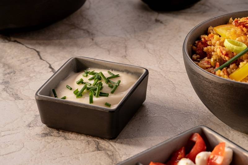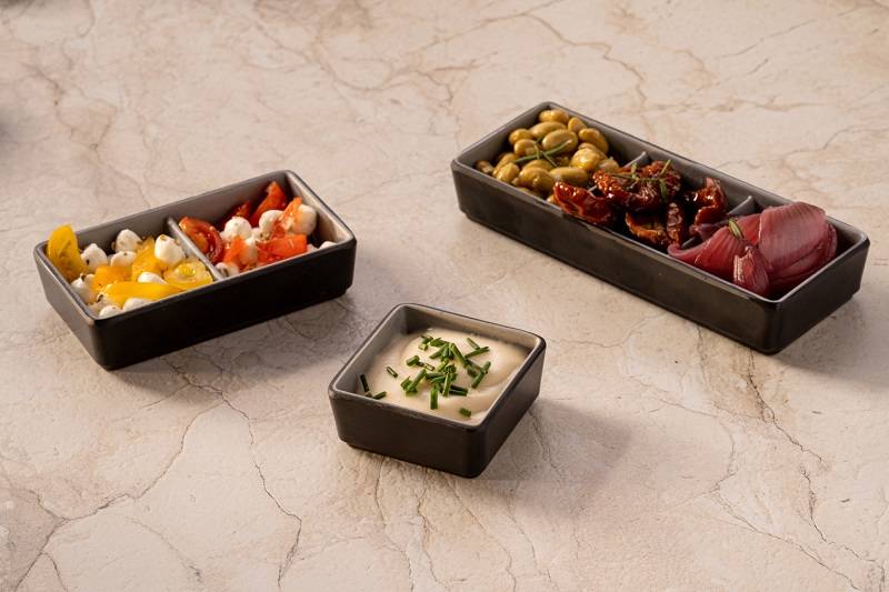 Linea Tenerife – Ciotolina quadrata bicolore grigia in melamina