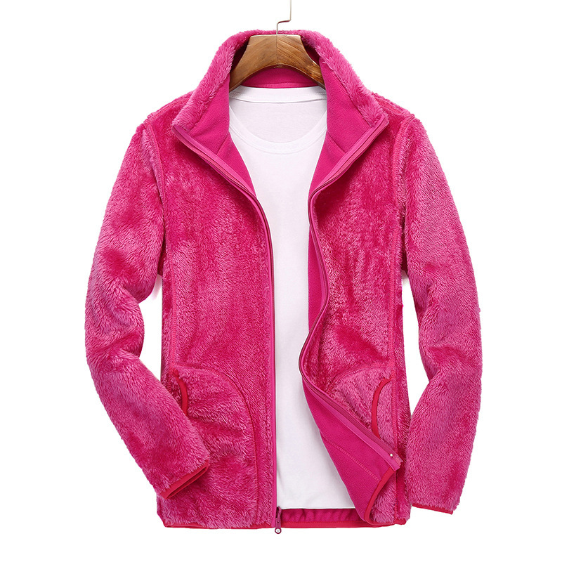Questo cappotto in peluche primavera autunno maschile e femminile, lo strato esterno utilizza un morbido tessuto in peluche, l’interno è riempito di peluche di corallo per ottenere un effetto di conservazione del calore più spesso. Il design del collare si adatta alla temperatura della serratura del collo, sia per il tempo libero quotidiano che per viaggiare all’aperto, in grado di equilibrare comfort e calore.这款男女同款春秋摇粒绒外套,外层采用柔软摇粒绒面料,内里加绒珊瑚绒填充,实现加厚保暖效果。立领设计贴合颈部锁温,不管是日常休闲还是户外出行,都能兼顾舒适与保暖。