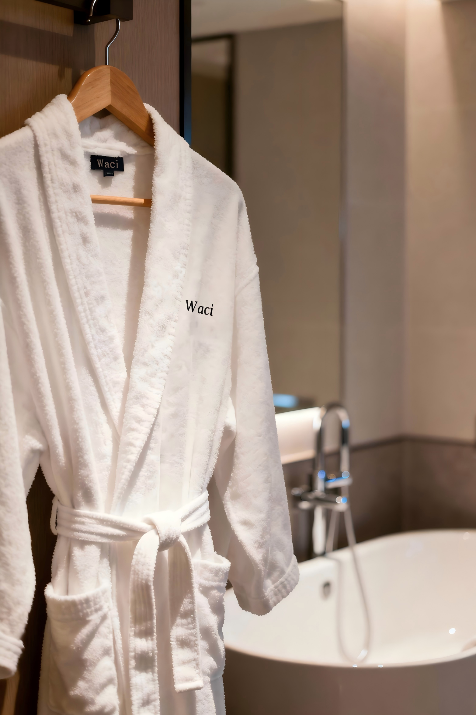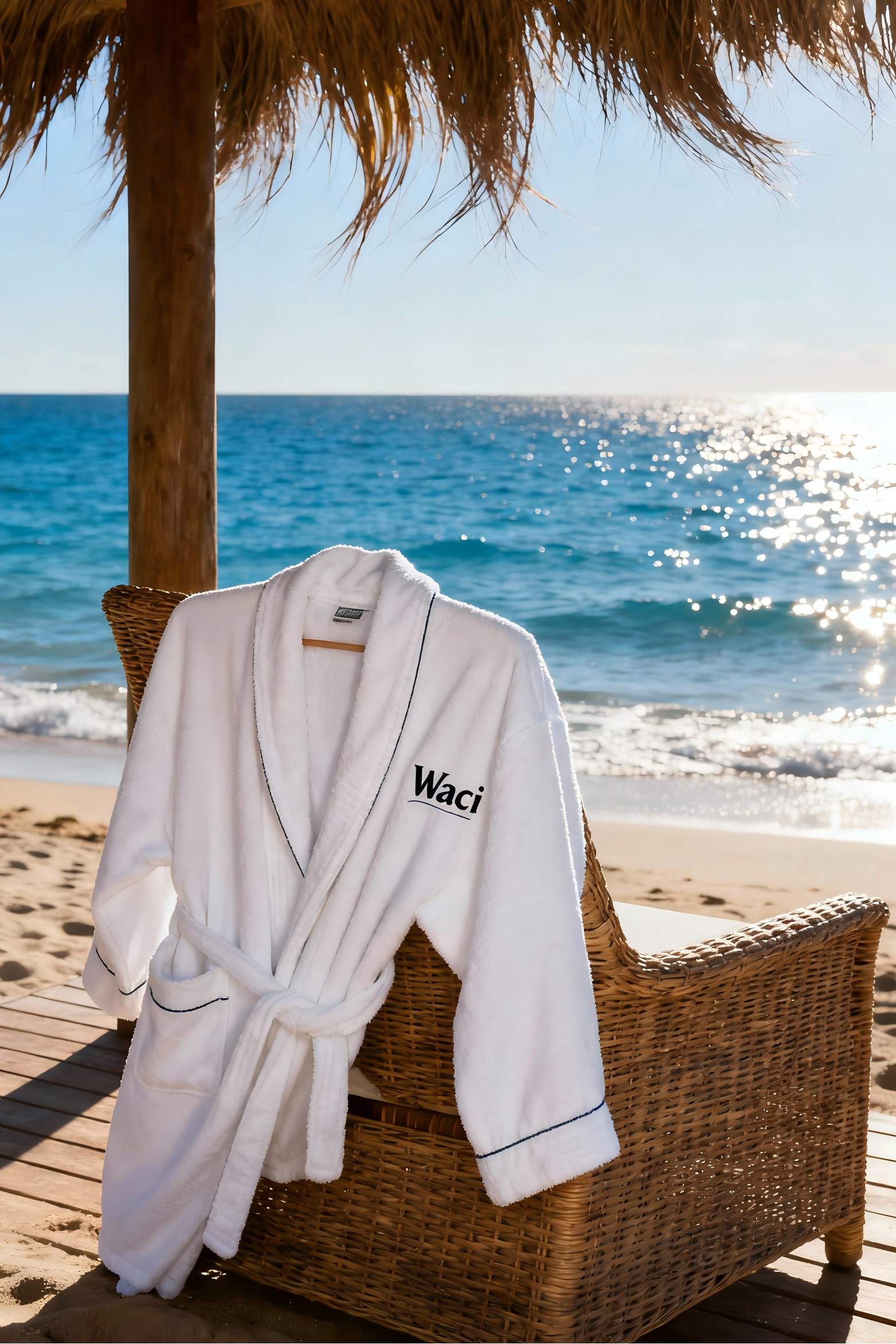 「Waci」浴袍,以毛圈布面料打造,亲肤吸湿性佳。儿童成人都可定制,定制产品价格请咨询。
