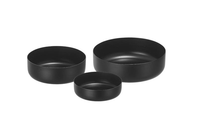 Set composto da tre ciotole in acciaio nere – finitura nero opaco