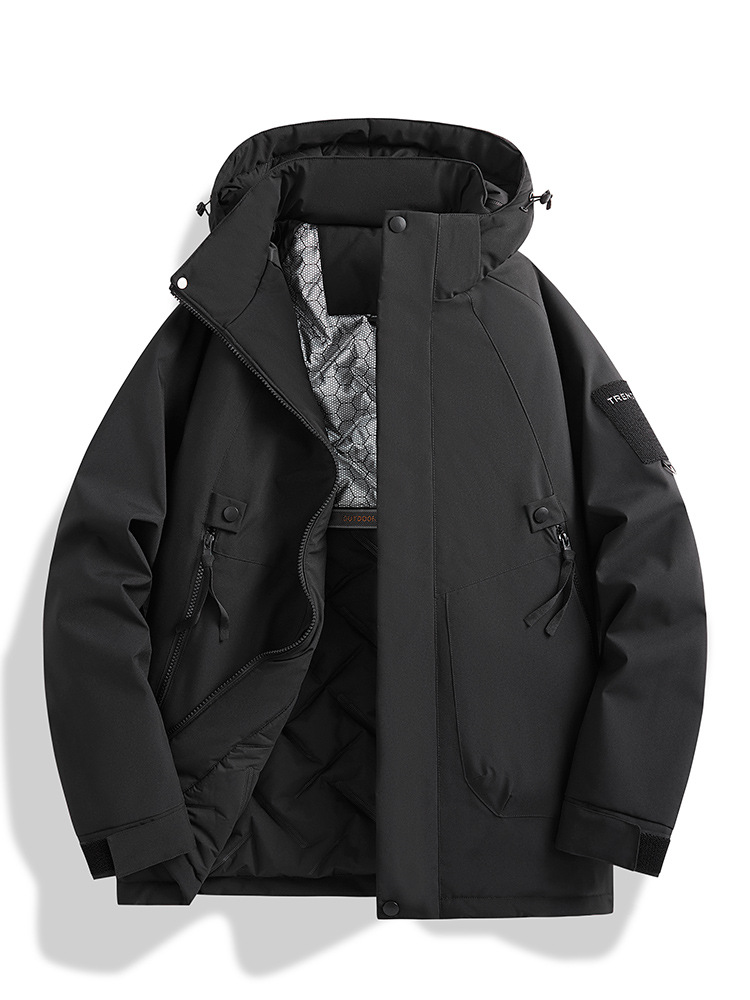 石墨烯加棉户外夹克,采用150D 高弹防水贴膜面料,搭配石墨烯锁温科技,宽松大码版型,加厚棉层高效保暖,防风防水,轻松应对登山等户外场景。