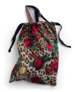 Animalier floral su tessuto poliestere, chiusura a coulisse con nastro in doppio raso: più che stampa sublimatica una dust bag sublime!