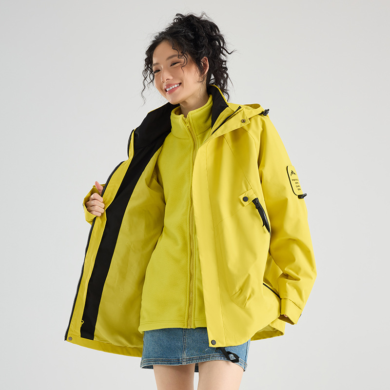 三合一冲锋衣,聚酯纤维防风防水,加厚抓绒内胆可拆卸,一衣多穿,硬核又百搭。尺寸详情请咨询客服。